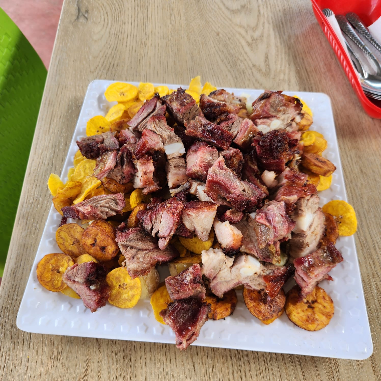 platano maduros y verdes crocante y jarra de preparada.