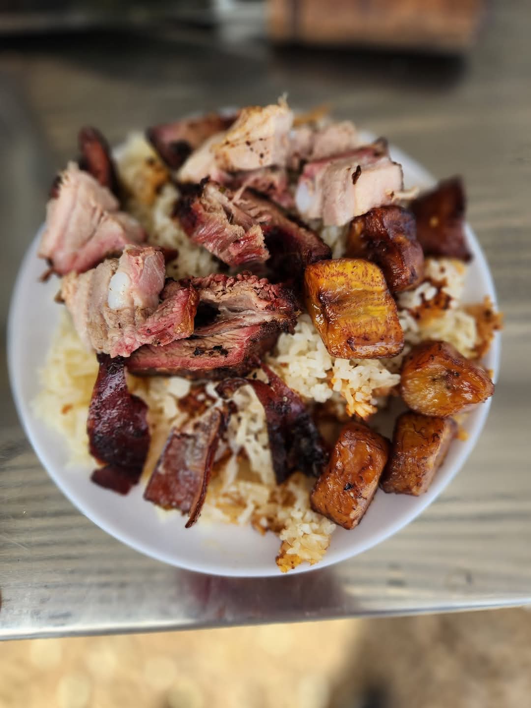 Carne de res, cerdo o mixta 250gr, un sancocho de gallina, arroz, papa, yuca,