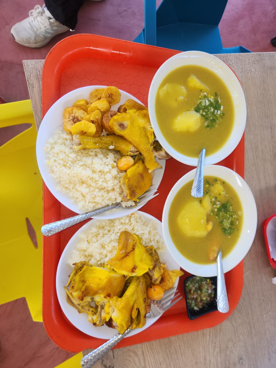 Carne de res, cerdo o mixta 400gr, un sancocho de gallina, arroz, papa, yuca,
